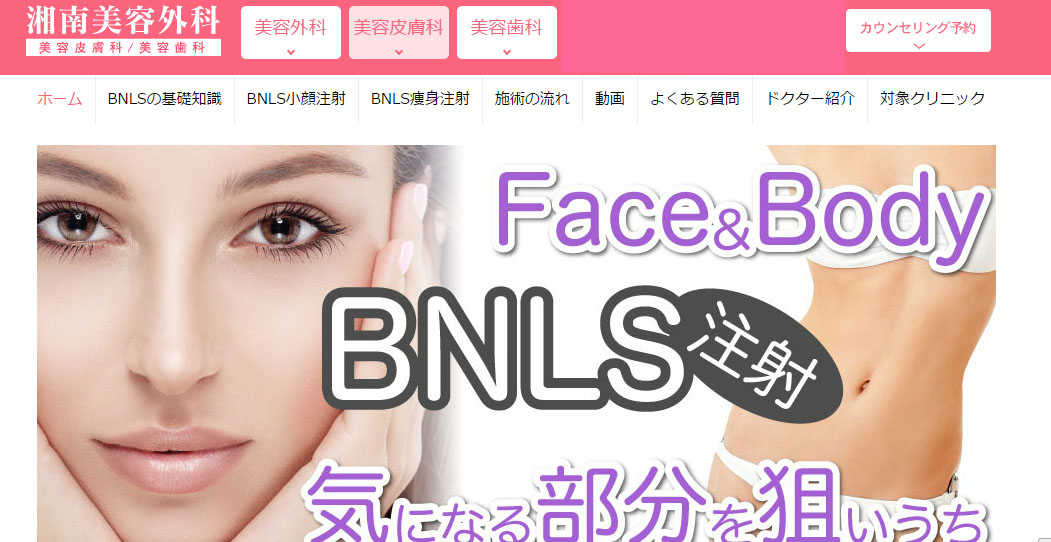 - BNLS施術件数と全国各地の好立地という点では評価の高いクリニックです。老舗クリニックだけあって熟練の医師がいるので、施術部位などについても細かくアドバイスもしてもらえることがメリット。初めての施術でも安心して任せられます。モニター価格もやっていて嬉しいですね。顔痩せを今年こそは実現したい方は小顔注射BNLSを試してみては?効果が半永久的に持続する画期的顔痩せ法です!ただ、暴飲暴食は脂肪細胞を太らせることになるので要注意です。自己管理ができれば、BNLSの小顔効果はほぼ半永久的に持続します。小顔矯正などでは元に戻ってしまうという方、本気で顔を小さくしたい方はBNLSを試してみると良いかもしれません。